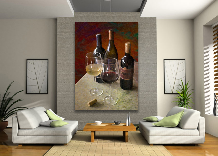 Wine For Two The beauty of wine celebrated in paintings by artist David Miller. 695.00 Shop Call for pricing Limited edition Gallery Wrap, hand enhanced giclee on canvas available in two sizes: 38"h x 44"w x 1" Oil painting