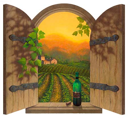 Tuscany, what beautiful things come to mind. Ageless, green, breathtaking sunsets, an old stucco estate. And, just like Tuscany, an aged wine to share with those you love. Sensual, mellow, fruity, majestic and worldly. Start building memories today of your visit to Tuscany and the tastes you savor, with art that reflects this image in your mind.
